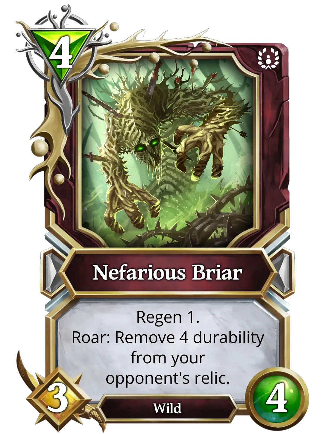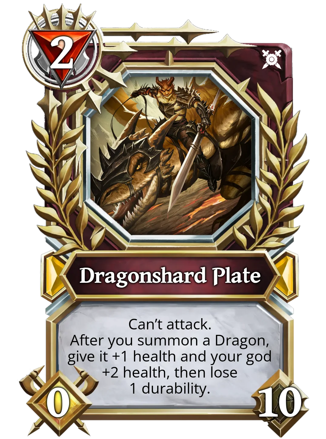 In Gods Unchained, there are a few cards that remove durability and can destroy relics, which is especially good against War decks that use dragon relics like Dragonfang and Dragonshard Plate, the latter having 10 durability, that's way too much and that's where the effects that destroy relics really shine.