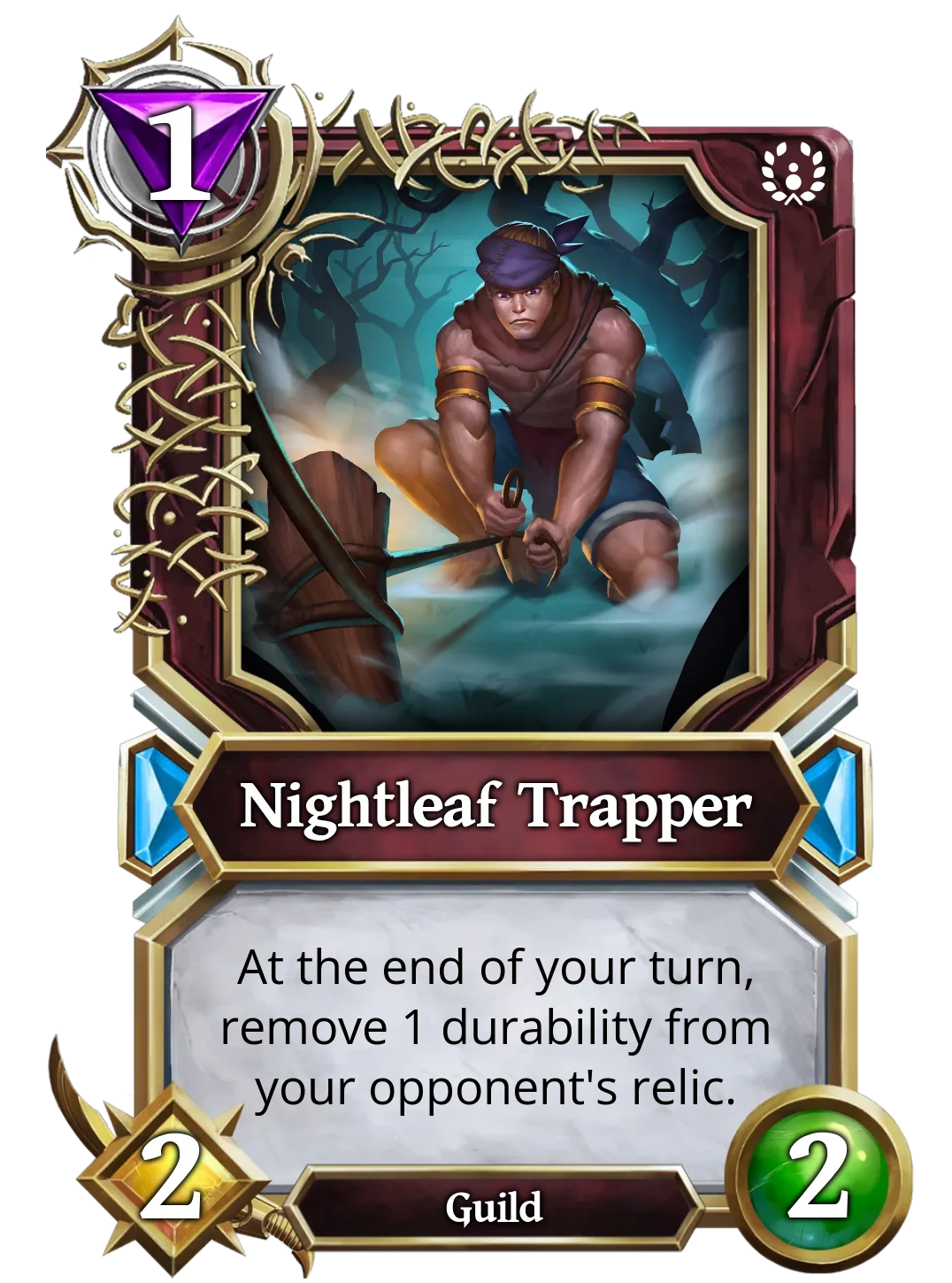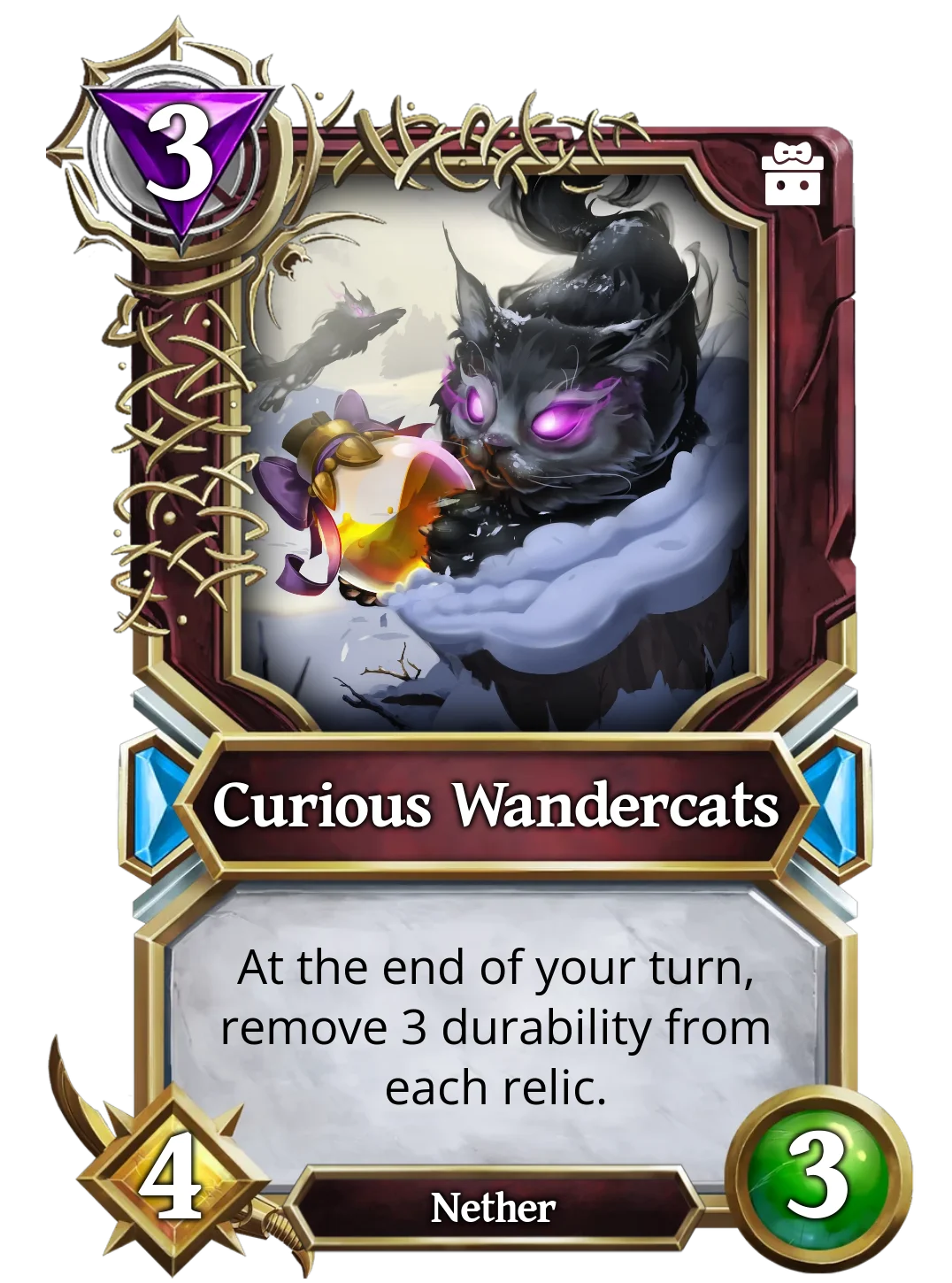 Nighleaf Trapper and Curious Wandercats, both units remove the durability of relics at the end of their owner's turn. Be careful, as the cat not only removes the durability of the enemy relic but also yours.