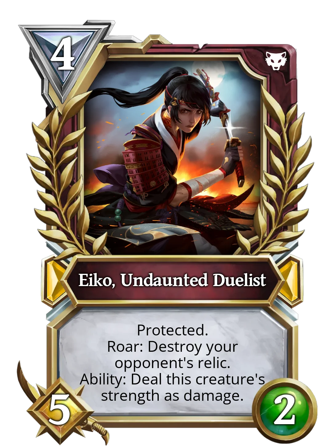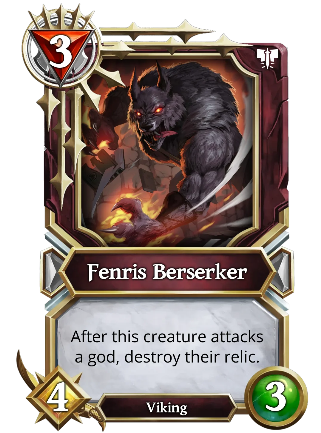 Ironborne Disruptor and Eiko, Undaunted Duelist will destroy the opponent's relic when summoned due to their roar effect. And Fenris Berserker, can destroy the opponent's relic every time it manages to attack a god, a very unique card.