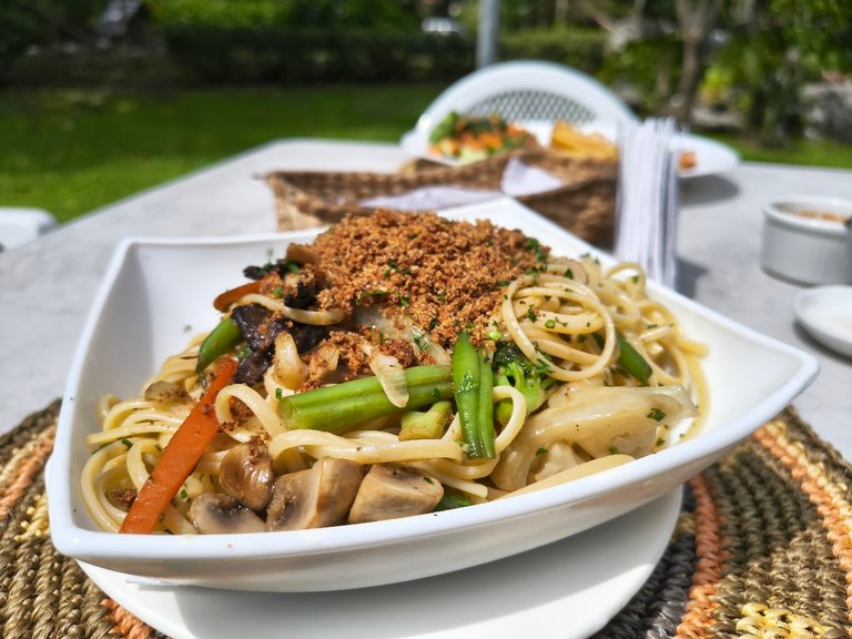 Ellie on the other hand didn't have to drive. So she enjoyed. Fair enough! We had a great lunch, pasta for me, salad with fries for Ellie.