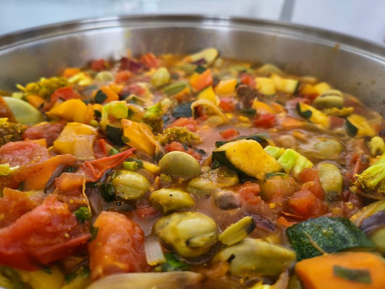 I did cook today. Quite deliciously. I did not make any carbs with high concentrations, though I usually eat a lot of those. Fava beans do contain quite a bit of starch, but also protein and such. I’ve been noticing more fat gain than muscle gain in the last months, so I wanted to switch my eating routines a little bit. And leaving out the carbs makes it easier to cook, just one pot.