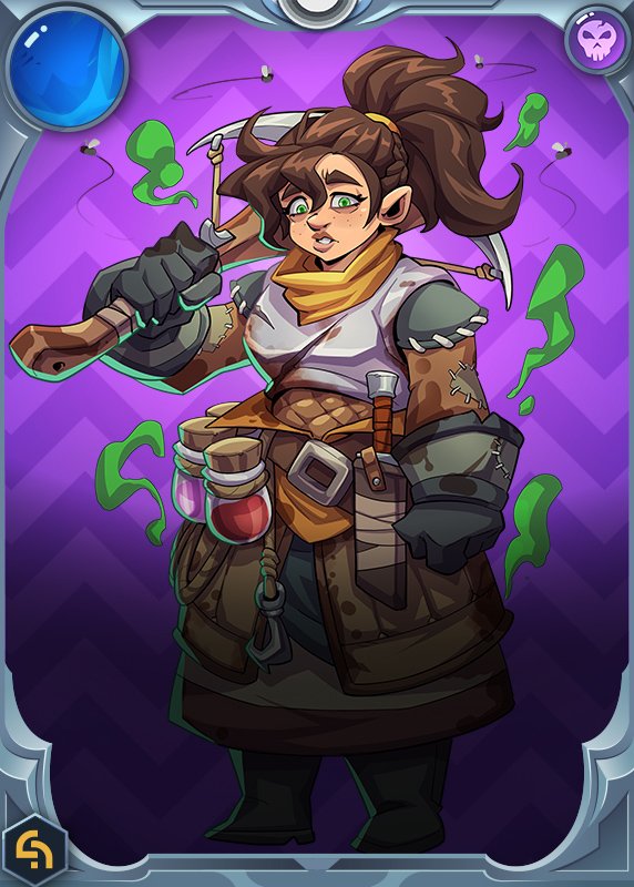 The voucher card for now is Cloveria Morth'Lana, a 7 Mana cost card with Recharge (triple attack every other round), Ambush (attack once before start), Camouflage and Double strike (twice atacking), bringing the potential to two 12 Range attack every other round. Hidden on the back, with Piercing added, can one shot two cards every round. I only got it level 2 for now. Three would be nice. Scary! For only 250 Vouchers per BCX. Maybe used together with the Captain Frankie as soon as it is available.
