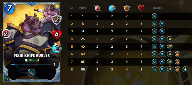 I like magic units and this one is still missing in my team. I'd like to get one but I was not able to so I'll just buy one when I have sold some cards. I'd like it at least level 2 where it has a divine shield skill. It's stats are good with 2 magic, 3 shields, 5 life and 3 speed.