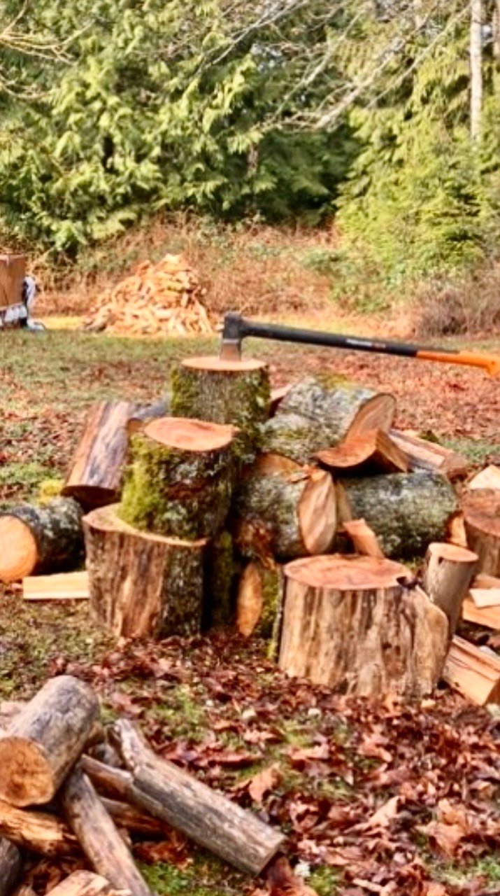Take a look at my stack of hand split firewood off in the background! This is just the โGreen firewoodโ, I have almost a full cord of cut and split and stacked, standing dead in my woodshed!๐