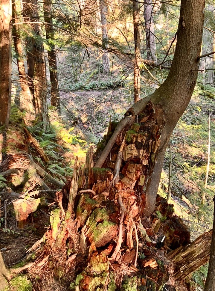 On todayโs hike I found four excellent examples of young trees, struggling to hold on tight to decaying tree stumps!๐ฎ